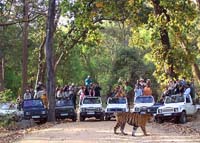 Covering 448 sq. km., Bandhavgarh forest (in Madhya Pradesh) is more than 2,000 years old and now a promising tiger reserve. This National Park tops the charts for Tiger sightings. The animal species and the moist deciduous flora & fauna here are typical of Central India. A home to other animals & birds such as deer, wild boar, langur, woodpeckers, hornbills, bee-eaters, vultures, blue rock thrushes, crag martins and lots more. A birdwatcher’s delight is Bandhavgarh. A hot favorite of Wildlife Photographers, this place is a perfect choice for Tiger tourists and the other Wildlife & general tourist. The Jeep safaris or elephant safaris with authorized guides are best options to explore & sight tigers. This place also has several accommodation facilities, to match preferences. Besides the National Park, Baghel Museum, Bandhavgarh Fort, Chenchpur Waterfall and Bhamera Dam are places that worth a visit on . In recent years, the Baghesur-Tiger & Tribal Art, Craft & Cultural Workshop cum Festival here has attracted Tiger Tourist from far & wide on India day tour to Bandhavgarh.